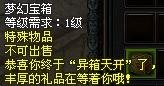 活动会在特殊地图“箱格里拉”中进行,所有玩家可以在都城圣法使者(611,471)处传送到“箱格里拉”地图,在这里,你不仅可以正常杀怪,获得相应的物品,还有几率获得独特道具——“奇异宝箱”和“梦幻宝箱”,好奇的你打开这些宝箱时,你的周围就会出现各种各样稀奇古怪的搞笑事件!