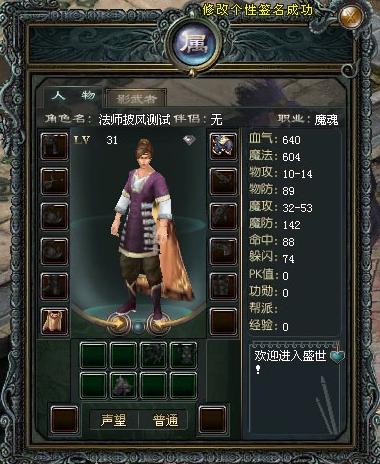 第一步:按键盘C键或鼠标左键点击主界面右下方的人物属性按钮打开人物属性框