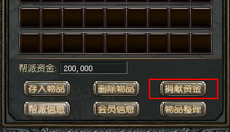 注:帮派资金,需要成员通过帮派主界面的仓库按钮进入后进行捐赠。