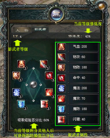 也就是说,影武者等级越高,附身于其他玩家时,能提供给其他玩家的属性加成越高,而且附身时可从中获得的经验也越多。