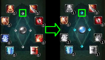 影武者可以修炼的8项属性之中,每升级一项属性,能点亮一个星石,每个等级必须至少升级4项,即点亮全部4颗星石,才能激活中间的升级球将影武者等级上升一级。(如下图所示)当然,提升这些技能少不了要消耗经验和金币。