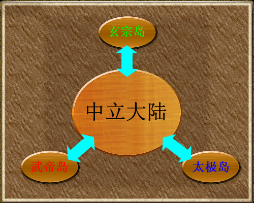 武帝、玄宗以及太极,《盛世Online》中的这三个阵营,本阵营的地区只是世界的一隅。本阵营的地区较为有限。中立大陆才是各位玩家放开手脚大展宏图的地方。