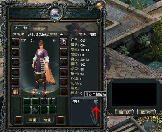 第一步:按键盘C键或鼠标左键点击主界面右下方的人物属性按钮打开人物属性框