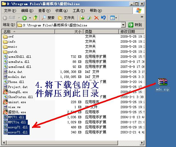 1.找不到MPC71.DLL文件的玩家可以“点击下载”MFC文件压缩包。此压缩包内包含4个文件:MFC71.dll、MFC71u.dll、msvcp71.dll、msvcr71.dll。
