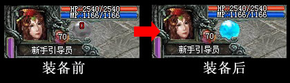 装备上经验球后,游戏主界面左上的自身头像的经验球位置会显示蓝色的球体。如下图: