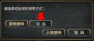 大家直接通过礼包等获得的小经验球,初始状态是1/100000。也就是说,里面只存储了1点经验值,这时候使用显然很不合算。所以,先要将它装备到角色身上。右键点击背包内的经验球,在弹出的界面中点选“装备”按钮,这样经验球就装备到身上了。