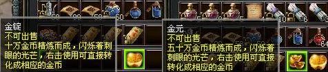 打开物品栏时,如果想要换回金币,可以右击使用物品栏中打包的金币,直接解包,解包后会有相应提示。