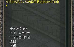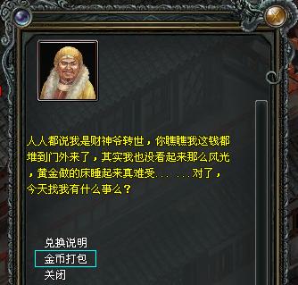 右键点击赵掌柜,在对话框中选择“金币打包”