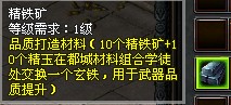 例如,下图所所示的精铁矿,与精玉一起可兑换一个玄铁,而玄铁则可用于武器的品质提升。