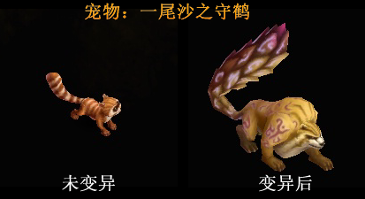 宠物在进化过程中有一定几率发生变异,宠物变异不影响宠物属性,但是外观会发生巨大的变化。宠物管理员处的变异宠物选项,可以用灵异之石(目前未开放)让宠物主动进行变异。