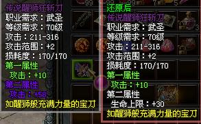 2.在特殊背包里,找到附魂还原丹,点击右键。鼠标箭头就变成一个闪烁的彩球,点击需要还原的装备即可看到这样的画面。