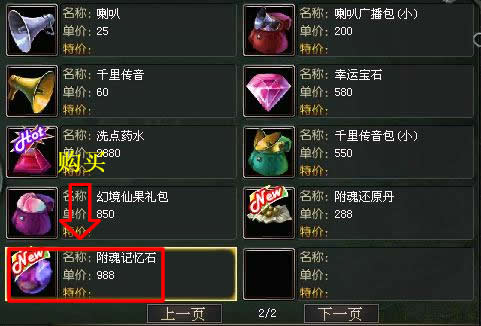 使用方法: 1.点击商城页面,购买附魂记忆石。