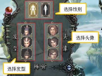 6. 选择自定义角色信息,性别、头像、发型都将影响您角色在游戏中的形象,仔细挑选吧。