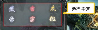 7. 选择阵营,《盛世OnlineOL》有3个可选阵营武帝、玄宗、太极,阵营间处于敌对状态。